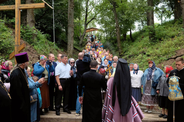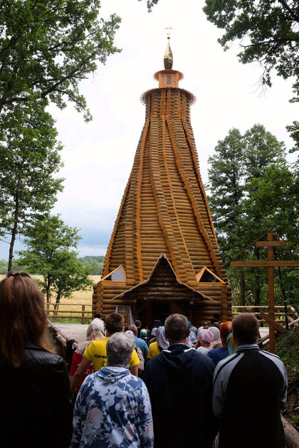 Общая высота часовни около 20 метров. К ней, в ложбину, ведут длинные деревянные ступени, на которых накануне собралось очень много народу. На освящение часовни пришли почти все селяне. Никто не остался в стороне.