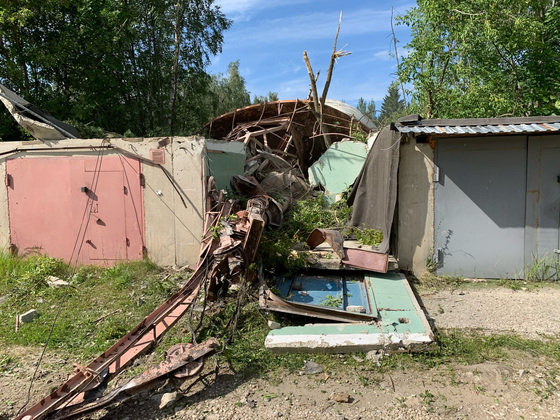 Момент падения 30 июля в районе 16 часов запечатлели видеокамеры. Она рухнула аккурат на несколько кирпичных гаражей. Как говорят очевидцы, грохот стоял жуткий.