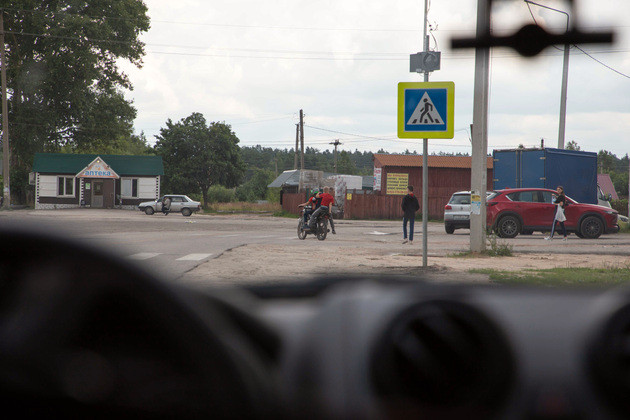 В Головино мы приехали после Вяткино и Бараков — в первом инспекторы проверили документы у пожилого байкера, там все оказалось в порядке, мужчина ничего не нарушал, а в Бараках вообще на момент нашего визита была тишь на улицах — ни души, ни автомобиля, ни мотоцикла, ни велосипеда.
