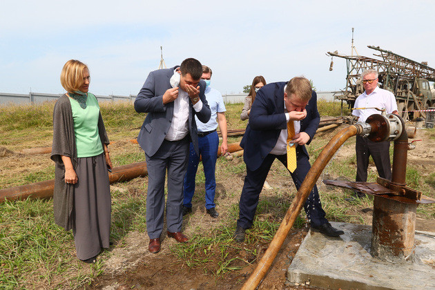Глава администрации Лакинска Алексей Андрианов также отметил, что вода из скважин уже была отправлена на проверку контроля качества. Не став дожидаться результатов анализов, Роман Годунин лично оценил воду из артезианской скважины и остался доволен её вкусовыми качествами.