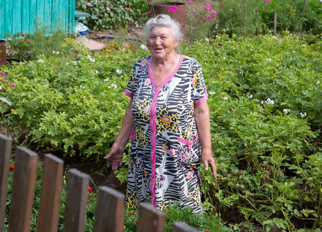 Альбина Федоровна, получила здесь земельный участок еще в 1970 году, ей тогда было 29 лет, она как раз была на сносях. А в этом году сыну уже пятьдесят, и уже полвека будет, как она сажает здесь картошку.