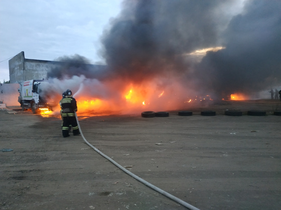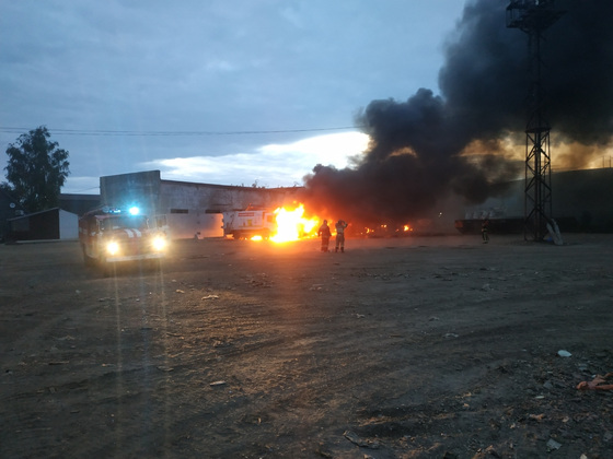 К моменту прибытия огнеборцев 10 мусоровозов горели на общей площади 60 кв.м.