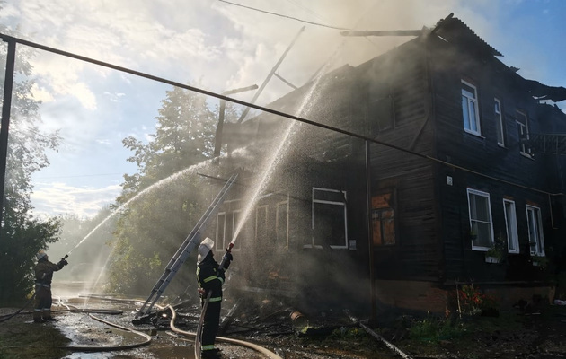 По прибытии первых пожарно-спасательных расчетов было установлено, что огонь охватил кровлю деревянного строения на площади в 600 квадратных метров. К счастью, жильцам дома удалось самостоятельно покинуть горящее здание. Погибших и пострадавших нет.