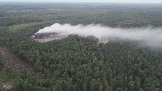 На Киржачский полигон, который должен был быть закрыт в 2018 году, руководство объекта общественников не пустило. С воздуха они зафиксировали утечку фильтрата и отсутствие дозиметрического контроля, обводного канала и оградительного вала по периметру, дезинфекционной ванны и пересыпки тела полигона.
