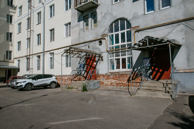 Здание построено в 1959 году. В отличие от соседнего дома на нем нет лепнины, смотрится он более скромно, но все равно, по сути, является видовым и стоит на одной из центральных улиц областного центра. И, что скрывать, до недавнего времени его облезлый и унылый серый вид (а фасад был покрашен в «мышиный» цвет) не радовал...