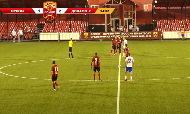 Любаков несколько раз спасал муромские ворота. Но в одном эпизоде — уже на 93-й минуте - вратарь с мячом в руках под натиском динамовцев чуть отступил за линию ворот и выпустил мяч из рук.