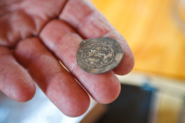 А вот и «заморская» диковина - монета из Ирана VI века эпохи Сасанидов, драхма шанхиншаха (императора) Хосрова I. Ее использовали в качестве подвески. На ней изображен сам властитель, который правил более 20 лет. Такие монеты чеканились в Иране до прихода ислама, после чего изображения людей с монет (и не только) пропали в силу требований новой религии. Но находка подтверждает, что сасанидские драхмы с «портретом» Хосрова еще долго попадали на Суздальскую землю благодаря торговле.