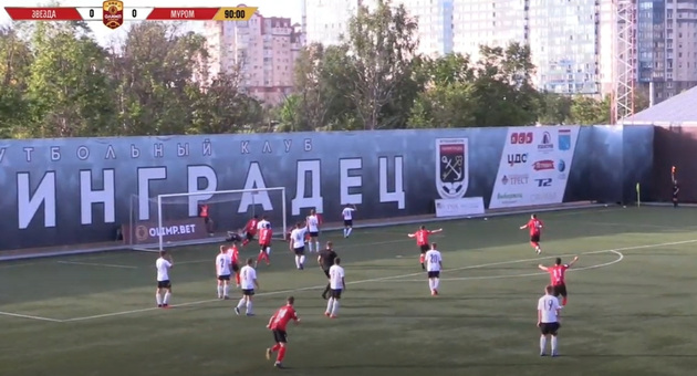 Во втором тайме «Звезда» на какое-то время завладела инициативой. Но уже совсем под конец, в добавленное судьей время, «Муром» усилил свой натиск и «закрутил» быструю атаку. Концовка получилась зажигательная. Муромский форвард Никита Киреев все-таки забил все-таки мяч в сетку. Но судья на линии зафиксировал положение вне игры, и гол засчитан не было.