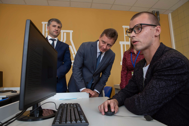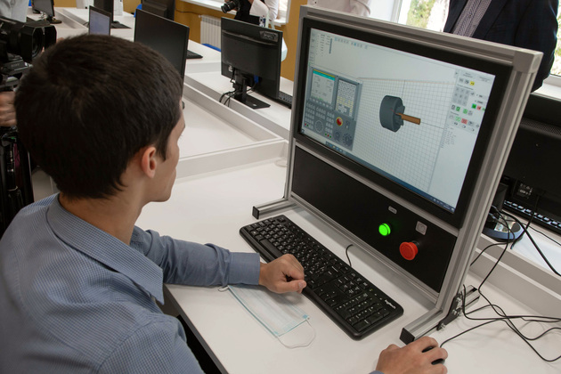 Колледж выиграл федеральный грант на сумму около 50 млн рублей и на эти деньги оборудовал пять новых кабинетов-мастерских: промышленной автоматики, промышленной механики и монтажа, мехатроники, реверсивного инжениринга, изготовления изделий из полимерных материалов. В них много ноутбуков, современной техники, станков из Германии, и все это в целом очень впечатляло. Тем более, что за компьютерами уже сидели, а за станками уже стояли студенты колледжа. Кто-то-то что-то сверлил или фрезеровал, кто-то изучал чертежи, а кто-то крутил отверткой в напичканных электроникой зарубежных щитах. Алексей Соколов, который сам учился в стекольном колледже, сказал, что в свое время не мог такого и вообразить.
