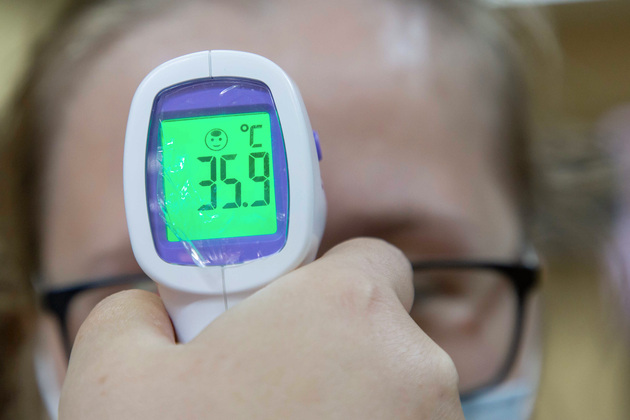 Пройти в зал для голосования можно только через медицинский пост. Сотрудница ДК Анна всем измеряет температуру. Такие же посты есть на всех участках. Но в ДКМ еще и маски раздают не только членам УИК, но и желающим избирателям, чего не было, например, на избирательном участке в ДДюТ. Тут же установлен рециркулятор воздуха, а средства для дезинфекции рук есть повсюду.