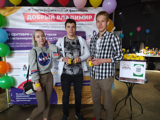 Студент политехнического колледжа Илья Сухлецов, ученики школы №16 Сережа Георгиев и Соня Круглова участвуют в фестивале «Добрый Владимир» в качестве волонтеров.