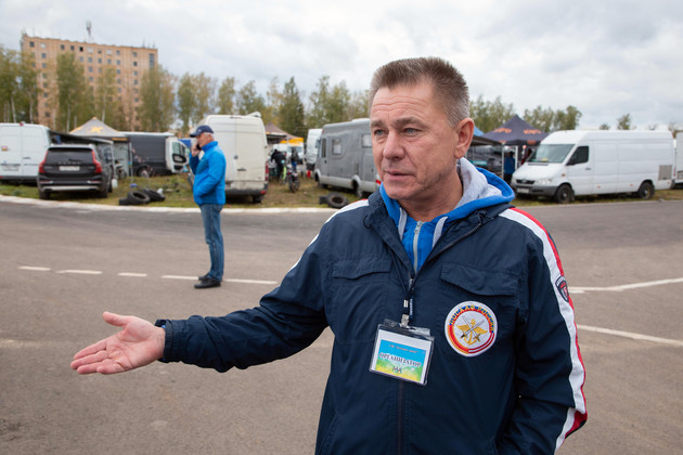 На наши опасения потенциально возможного дождя (небо то и дело затягивали тучи) Игорь Чех, директор Центрального спортивного автомотоклуба ДОСААФ России, улыбнулся: «Дождь нам не страшен! Наоборот, соревнования будут только зрелищнее. Куда хуже сухая жаркая погода, когда пыль столбом. С точки зрения безопасности — это кошмар, потому что видимость в шлемах сразу нулевая. Так что в жару трассу, наоборот, поливают, чтобы пыли было меньше».