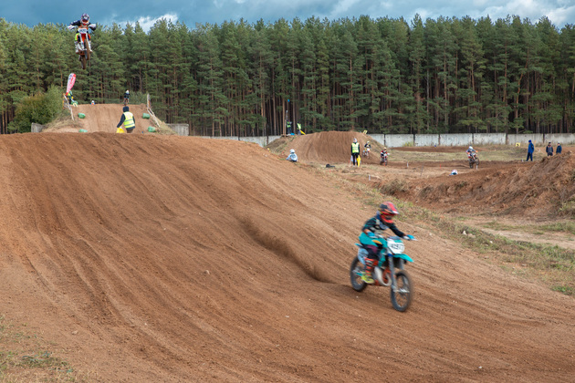 Впрочем, и без пыли мотокросс — травмоопасный вид спорта. Хотя по трассе гонщики едут со скоростью 50-60 км в час (пустяки, казалось бы!), но нужно понимать, что это далеко не спидвей: визуально ровные утрамбованные места на деле далеко не ровные, а вязкие и ухабистые, из-за чего мотоциклы на них — на скорости! - будто пляшут, и удержать машину вертикально — та еще работа! Ну а самая зрелищная часть таких гонок — это вообще прыжки на мотоциклах с горок разной высоты и «разлета». Тренеры ребят, выстроившиеся вдоль трассы и жестами показывающие мчащимся воспитанникам, какой маневр лучше, сказали нам, что можно и до 70-80 км даже на самой неровной трассе разогнаться, но тогда просто костей не соберешь...