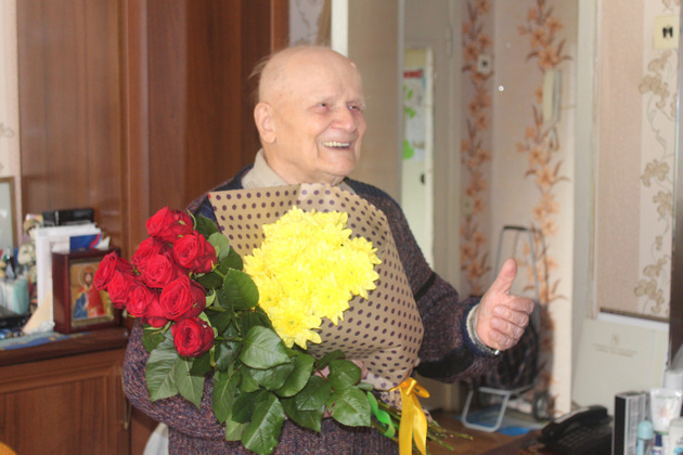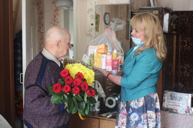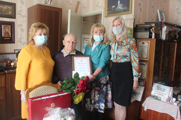 Представители соцзащиты поздравили Николая Матвеевича с праздником, высказали слова искренней благодарности за стойкость духа, патриотическую деятельность по воспитанию молодежи, пожелали здоровья, долголетия и благополучия, вручили цветы и подарки.