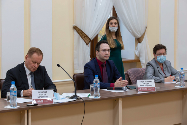 На площадке филиала РАНХиГС Позицию губернаторской команды отстаивали на дискуссии вице-губернатор Аркадий Боцан-Харченко, который курирует административную реформу, и первый вице-губернатор Сергей Шевченко, возглавляющий социальный блок администрации.