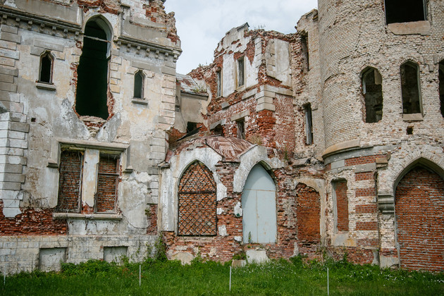 Следующие занятия проводились на территории главного замка усадьбы Храповицких. Ребятам рассказали и показали особенности обработки изделий из камня, дерева и металла. Уроки проводились в специально оборудованных палатках на специальном учебном материале - такой объект можно было очистить от краски и подготовить к консервации. Опытные реставраторы показали механические и химические методы работы.