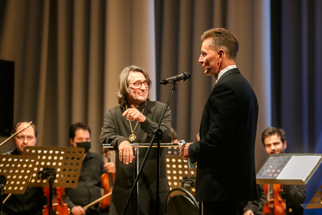 А маэстро в ответ, прежде всего, порадовался тому, что наконец-то музыканты снова на сцене, а зрители в зале, несмотря на тяжелое время и маски на лицах публики.