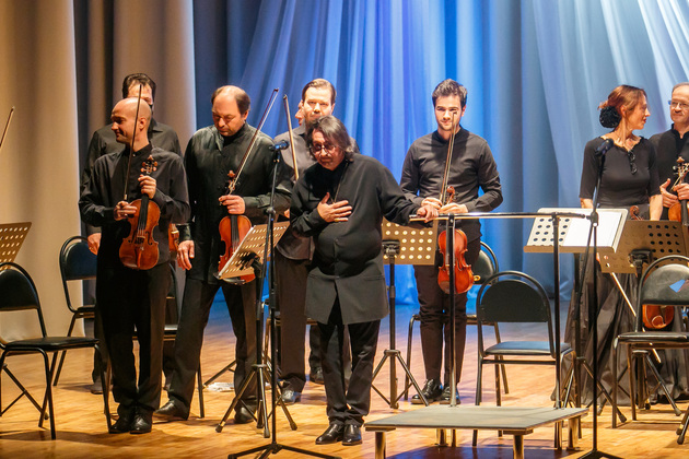 Каждый солист в своей части произведения встает и демонстрирует свое совершенное мастерство. Получается, говоря современным языком «баттл» солистов. Сам Башмет удивительным образом выступает в одном лице и как дирижер, и как альтист.