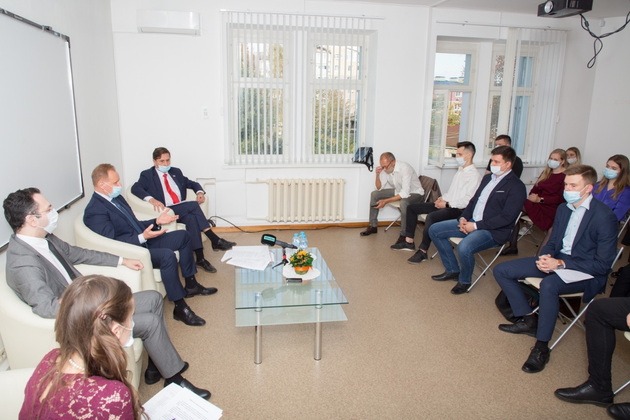Функции и задачи нового ведомства первый замгубернатора Сергей Шевченко и вице-губернатор Аркадий Боцан-Харченко обсудили с молодежью 15 октября.