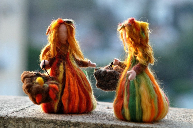- Феи из валеной шерсти – моя любовь! Познакомилась я с этой техникой тоже, кстати, в «Маминой радости». У нас во Владимире я не встречала мастериц, которые специализируются именно на этих куклах, нежных, воздушных, которые всем приносят радость! Кстати, есть еще варианты «феи с лялечками», которых я назвала оберегами «счастливое материнство». Мы используем для их изготовления шерсть барашка. Она нежная, релакс!