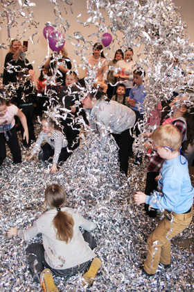 падающую фольгу, подбрасывали её, делали ангелов, бумажные прически и бороды для забавных фотографий. Отличному настроению помогли потоки серебряных лент, взлетающие вверх, яркое конфетти и море веселья!