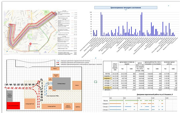 Сотрудниками компании были дотошно и скрупулёзно изучены и измерены все процессы стандартной работы на аварийном участке. Буквально с секундомером отслеживалась каждая деталь: время поиска утечки, ожидания материалов, разгрузки, откачки воды из траншеи и многого другого. Чтобы не было отрыва от реальности, все действия проговаривались с сотрудниками, непосредственно устраняющими аварию. Опросы выявляли также и мотивацию рабочих. Все полученные данные превращались в таблицы и графики.