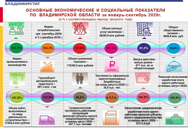 Владимирстат обнародовал основные показатели развития экономики региона за 9 месяцев 2020 года.