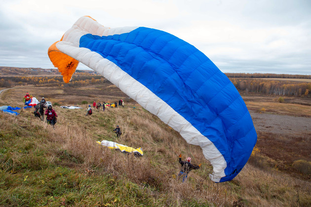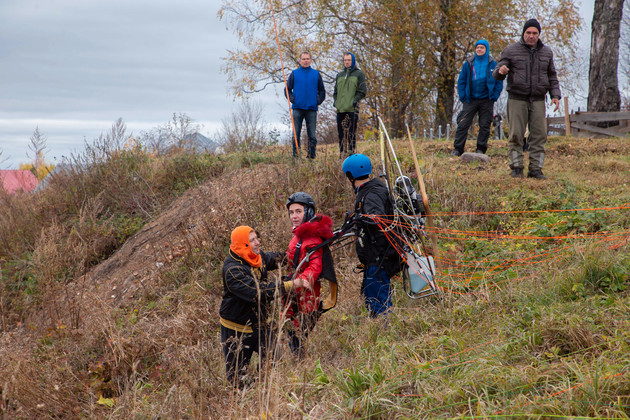 Артем сказал, что некоторые спортсмены совмещают свободные полеты и мотопарапланеризм (он-то от наличия ветра не зависит!), но некоторые - сторонники исключительно свободных полетов на крыле. И вот тут произошло то, за что мы особенно любим свою работу — сюрприз с участием в событии: один из московских ребят предложил мне полетать с ним в «двойке». Как будто мечту угадал!