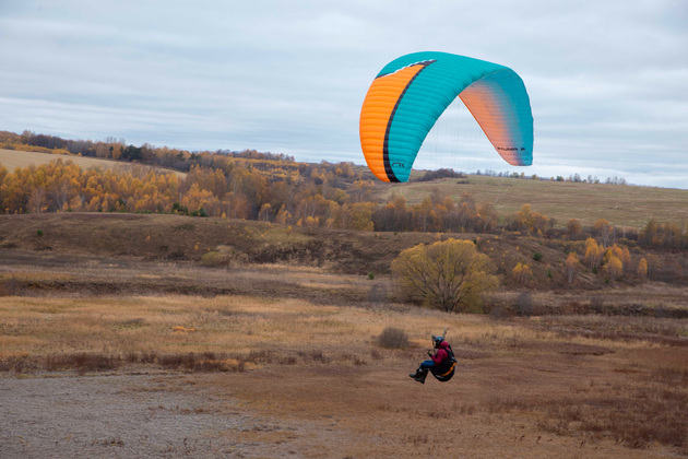 Инструктаж, экипировка меня - пассажира, оборудование параплана силовой установкой — и мы после короткого разбега с холма действительно полетели, примерно на полчаса парализовав соревнования: ребята временно прекратили взлеты и терпеливо ждали, пока мы отлетаем и приземлимся, чтобы не создать рисков столкновения с парапланом, катающим «гражданского». Спасибо им за эту чуткость!