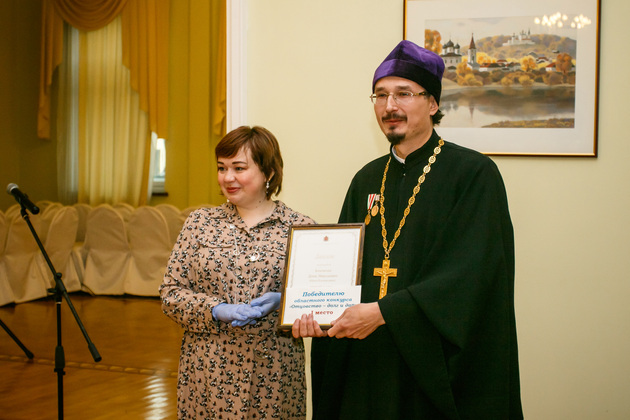Самой запоминающейся семейной парой торжества стали супруги Сергей и Татьяна Ляпковы. Потому что на руках у Татьяны покрикивала чудесная крошечная дочка Евочка, которой только четыре месяца. Всего у Ляпковых четверо детей. Сергей также был отмечен в номинации «Лучший многодетный отец». Он известный иконописец из Мстеры, участвовал в росписи многих храмов, в том числе и московских. Все дети в семье занимаются рисованием, музыкой, рукоделием. Сергей занимается с сыновьями рукопашным боем, ходит рыбачить. А недавно занялся пчеловодством. Жена Татьяна гордится им и считает, что ей очень повезло с мужем.