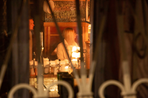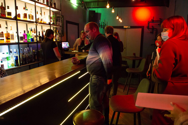 Проникаем внутрь через задний вход в арке. Засидевшиеся после 23 часов гости быстренько покидают бар. На вопросы Роспотребнадзора и полицейских, что делают здесь эти люди, следует такое объяснение: пришли вечером незадолго до 11 часов, еще не доели, не допили, не выгонять же?