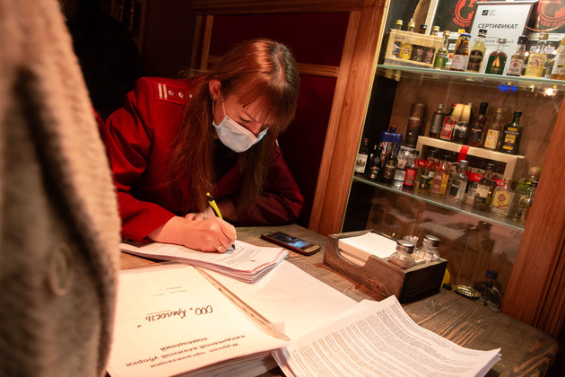 Заместитель начальника юридического отдела Дарья Лызлова требует показать обязательные документы – журнал организации ежедневного контроля температуры тела работников и журнал дезинфекции всех контактных поверхностей. Такие журналы должны быть в каждом подобном заведении. В них надо делать соответствующие записи по мере проведения измерений или дезинфекции.