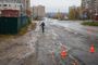 «Колейности на дорогах вообще быть не должно, она должна быть устранена в течение 14 дней,– заявил Федяев. – Вот видите – пешеходный переход, он весь залит водой, люди по нему идти не могут. Как идти по тротуару, если на дороге колея заполнена водой, от которой летят брызги?». Колейность, идущая вдоль всей дороги, по мнению эксперта, возникла от того, что само основание дороги «было сделано недостаточно основательно». По его мнению, улица Разина также, как и улица Чапаева, не готова к большому потоку машин: здесь та же колейность, неосвещенные пешеходные переходы, провалы дорожного полотна, усадка колодцев канализации.