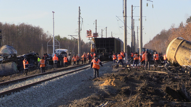 Напомним, днем 16 ноября 2020 г. на железнодорожных путях, где произошла авария, проводились ремонтные работы. Как было установлено, железнодорожники при приближении поезда не успели подключить стрелку к приводу, что привело к переводу части вагонов грузового поезда на другую железнодорожную ветку и их сход с рельсов.