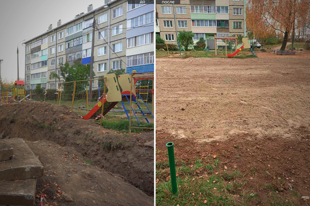 Работы закончены, проведено благоустройство. По пожеланию жителей завезён не чернозём, а песок.