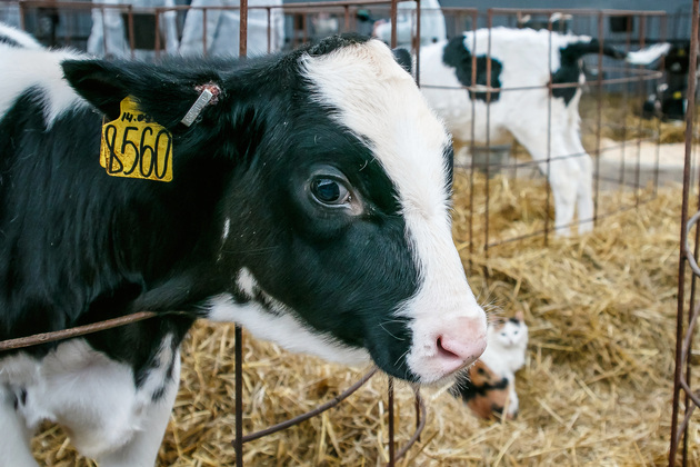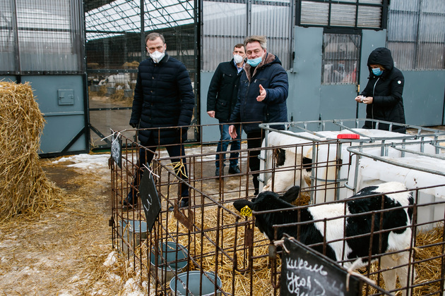 Трутнев показал и новый телятник с регулируемой вентиляцией на 150 голов, построенный по его словам «хозспособом», собранный «своими руками». Телята, хотя и отделенные друг от друга кругами решеток, содержатся в нем не в стойлах, а общем просторном помещении. Такая технология позволяет наблюдать за всеми ними одновременно даже одному человеку.