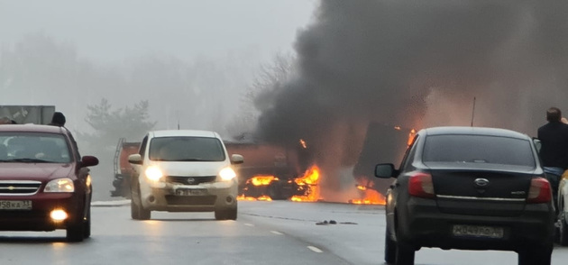 – Сообщение о дорожной аварии нам поступило в 11.12, на место сразу выехали подразделения МЧС, скорая медицинская помощь, ГИБДД. Сотрудники МЧС провели пенную атаку, не допустили распространения огня на бензовоз и ликвидировали пожар на площади 50 кв.м. Всего в ликвидации последствий ДТП принимали участие 20 человек, 6 единиц техники, – рассказали в пресс-службе спасательного ведомства.