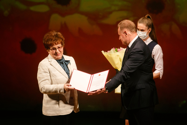 Вице-губернатор вручил председателю организации Валентине Бородиной высокую награду – памятную медаль Валентины Гризодубовой – за большой вклад в дело укрепления мира и согласия между народами, в семьи и обществе. Именно легендарная летчица Гризодубова, первая из женщин Герой Советского Союза, в 1941 году возглавила антифашистский комитет советских женщин.