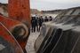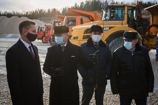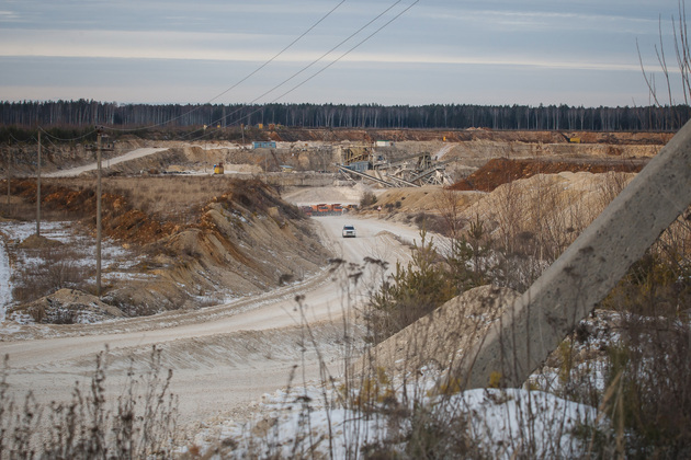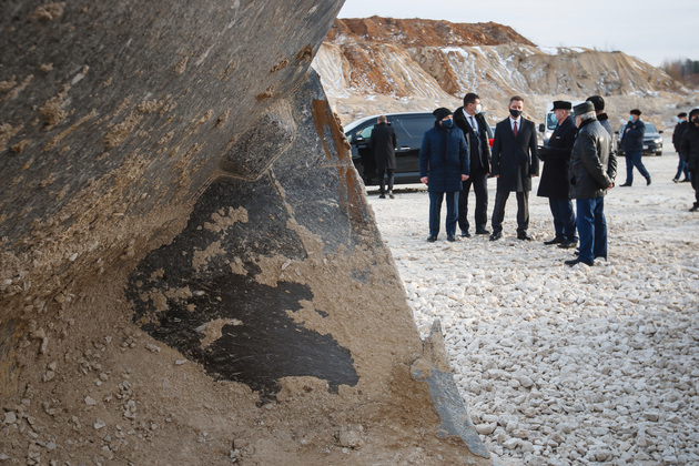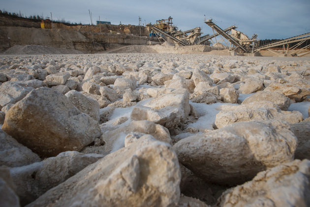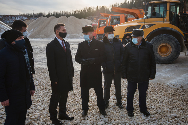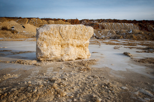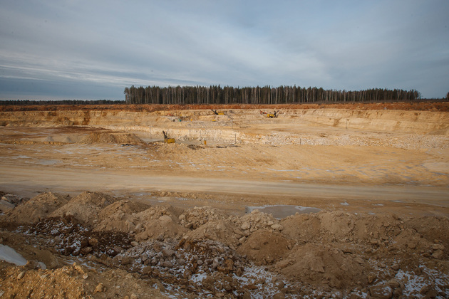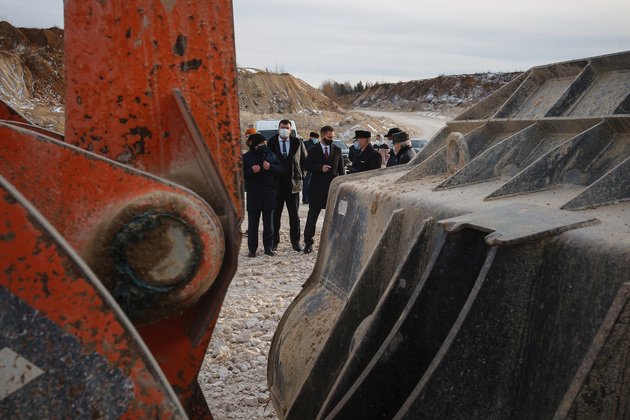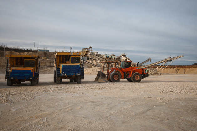 Условную «красную ленточку» вместе с губернатором перерезали председатель комитета Законодательного собрания Владимирской области Александр Цыганский, глава администрации Гусь-Хрустального района Алексей Кабенкин и гендиректор предприятия Игорь Баранков. Но сначала участникам церемонии показали знаменитый Добрятинский карьер. К нему ведет широкая дорога, выложенная из того же известняка. Внизу в линейку были выстроены тяжелые самосвалы: «БелАЗ», «Tatra», «Hania»...