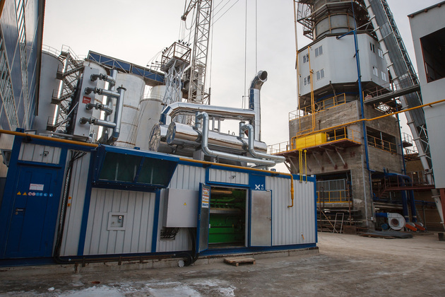 На заводской территории уже расположился комбинат минеральных порошков с железнодорожной веткой, на которой стоял состав из вагонов-сухогрузов, тоже впечатляет. Белый порошок известняка словно снег осыпался на покрытую первым льдом территорию завода – а потому ходить было не скользко. Новый завод – это совсем не то, что машиностроительные корпуса. Основная часть его – под открытым небом. Это огромная башня, в которой известняк будет нагреваться до температуры в тысячу градусов. Внутри корпусов – автоматика, которая и будет всем «руководить». Завод еще не работает, его пуск, по словам гендиректора, намечен на январь следующего года. Но 280 млн рублей кредитов уже «освоены». Баранков запускал различные механизмы – они ревели на всю свою реактивную мощность. Гендиректор показал и заводскую энергетическую установку: завод не нуждается в подводе электросетей: «В связи с ростом тарифов на электроэнергию мы изыскали средства для приобретения собственного энергоцентра мощностью 1 МВт стоимостью около 40 млн рублей».