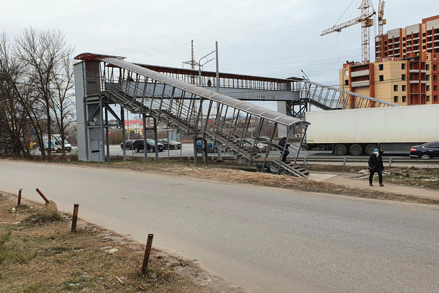 - Этот надземный пешеходный переход через трассу М-7 («Волга») в районе жилищного комплекса «Содышка» работает с апреля этого года, – рассказал руководитель регионального отделения «Народного контроля» Сергей Федяев. – Но до сих пор к нему нет безопасного подхода: по примыкающей к домам на улице Лакина дороге и дороге-дублере нет пешеходных переходов! Направляясь к надземному переходу, люди подвергают себя опасности.