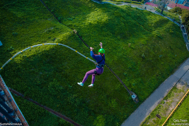 - В Нижнем Новгороде увидела, как ребята прыгали с моста на улице Федоровского, - рассказывает Юлия. - Я решила это повторить. Муж вначале засомневался, но потом поддержал. И я прыгнула! Следующей высотой стали 48 метров. Готовлюсь - и прыгаю вместе с нижегородской надежной командой «Зеленые коты».