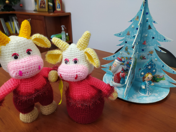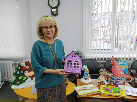 Наряду с другими были объявлены и победители конкурса «Лучшая новогодняя игрушка». Поверьте: выставка, составленная из присланных работ, реально создает праздничное предновогоднее настроение! Поражает фантазия мастеров и разнообразие техник. Здесь сказочные переливающиеся домики, волшебные, связанные крючком зверюшки, сверкающие бусинками снежинки и замысловатые украшения в технике джутовой филиграни. Камешковский СРЦН сразил всех сиреневым волшебным домиком, а Гороховецкий центр «Семья» – целой семьей связанных из шерсти премилых Смешариков!