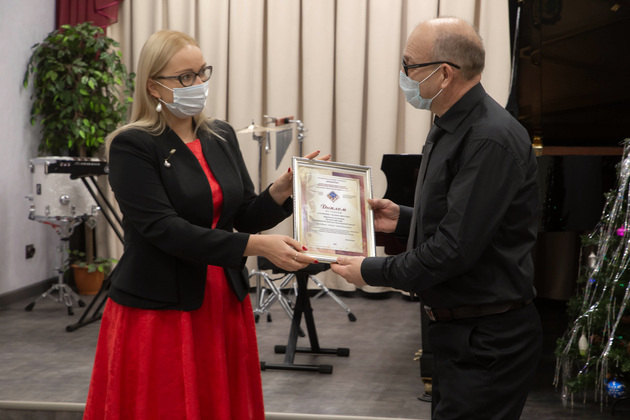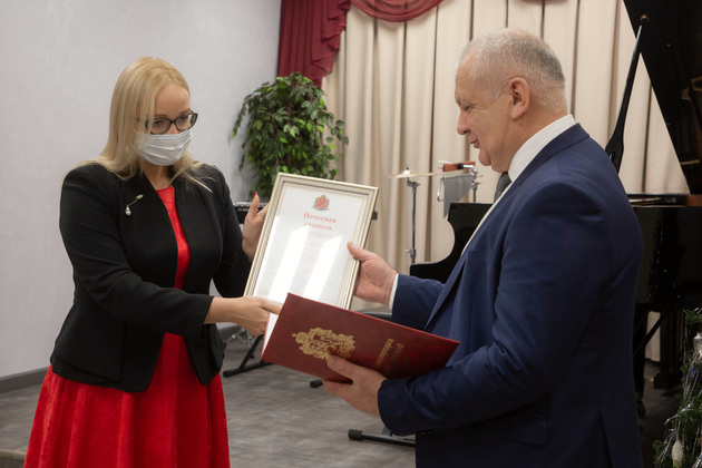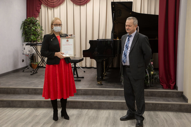 Алиса Бирюкова вручила директору школы Благодарность областной администрации и подарок – телевизионную панель. Кроме того, она передала Диплом Всероссийского фестиваля-конкурса любительских творческих коллективов в номинации «Духовые оркестры» духовому оркестру школы.