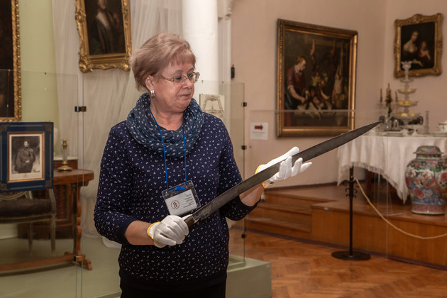 В собрании ВСМЗ кроме российского бережно хранится холодное и огнестрельное оружие разных веков из Италии, Испании, Англии, Франции, Германии, Турции, Персии... Большая часть коллекции — это собрания наших знаменитых земляков-дворян: Воронцовых-Дашковых, Трегубова, Храповицкого. Интересные экспонаты специально для «ВВ» принесла из запасников музея Елена Петрова, хранитель коллекции оружия. Кстати, на этой должности она трудится с 1983 года и уверяет, что знает все экспонаты наизусть. Судя по ее подробному рассказу и быстрым ответам абсолютно на любой вопрос — так и есть.