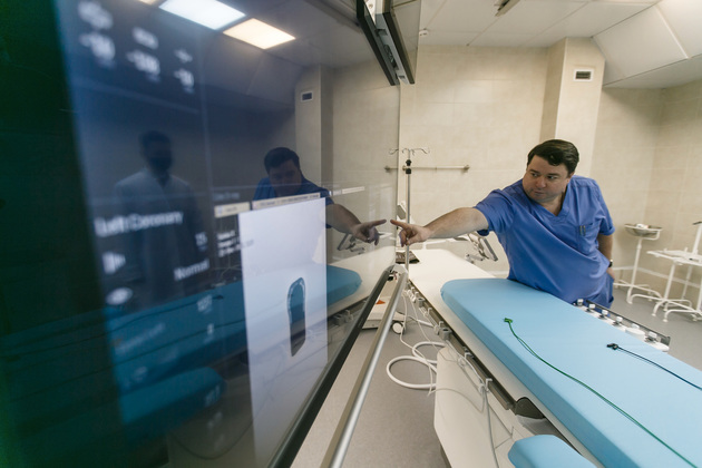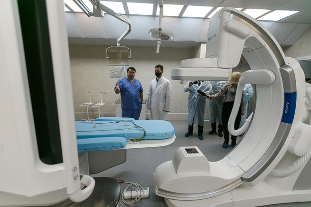Затем глава региона посетил региональный сосудистый центр, работающий на базе Областной клинической больницы. В 2020 году это учреждение получило по нацпроекту новое оборудование на сумму свыше 200 млн рублей: ангиограф, с помощью которого делаются операции внутри сосудов под контролем рентгена; аппарат роботизированной механотерапии для реабилитации пациентов; стабиоплатформу; аппараты ИВЛ; аппарат УЗИ; оборудование для нейрохирургической операционной; специализированную мебель.