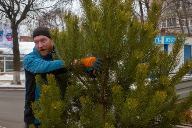 Едем дальше. Прямо у Центрального рынка на Батурина еще один елочный базар. У Геннадия Тихонова основной бизнес – бурение скважин и установка окон. Зимой спрос на эти услуги проседает. Зато появляется время для елок.