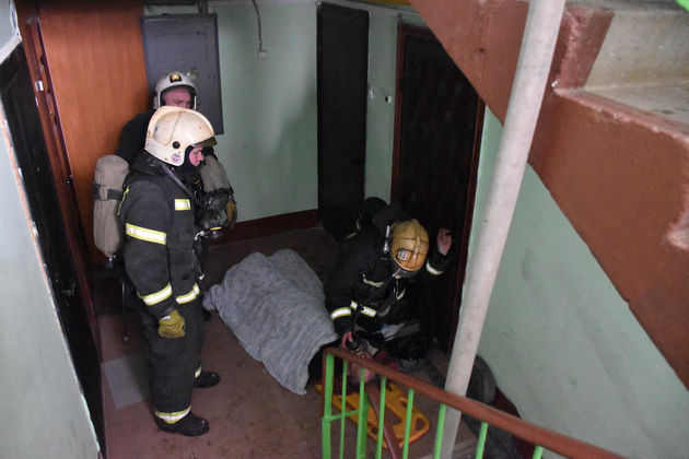 Незамедлительно были сформированы звенья газодымозащитной службы, которые отправились на спасение людей и тушение пожара. С использованием коленчатого подъёмника с балконов верхних этажей пожарные сняли четверых. Из квартир при помощи кислородных масок выведены на воздух и спасены ещё 4 человека.
