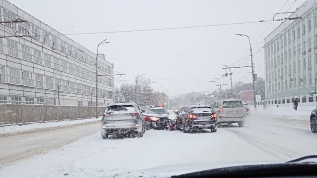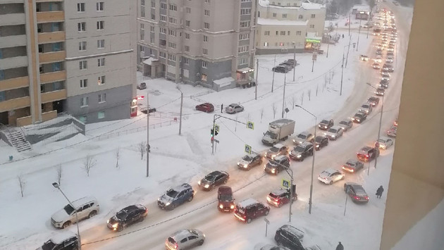 А вот и официальный комментарий мэрии: “Из-за продолжающегося снегопада в городе начали образовываться пробки. Их основными причинами стали сужение дороги из-за заносов по ее краям, значительное число мелких ДТП и замедление движения большегрузных автомобилей, особенно на подъемах”. Причину и следствие никто не перепутал?