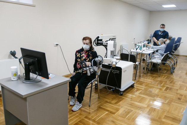 Также сосудистый центр получил дорогостоящее оборудование для реабилитации больных, о котором приходилось только мечтать. Это роботизированный аппарат, который восстанавливает движение парализованной руки, стабилоплатформа с биологической обратной связью, помогающая нормализовать координацию движения. Это и велоэргометр с обратной биологической связью, аппараты с интерактивными программами - для восстановления амплитуды движений, комплекс для транскраниальной магнитной стимуляции головного мозга, переносной аппарат УЗИ и ультразвуковой сканер для кардиодиспансера – для УЗИ сердца и сосудов. Все для эффективной реабилитации больных после инсультов и инфарктов, снижения инвалидизации.
